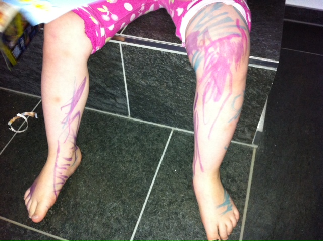 «Chani es Blatt ha?» Sie steht vor mir, wartend. Ich stehe auf und hole ihr ein Blatt aus dem Schrank. Zufrieden hüpft sie in ihr Zimmer zurück, ich arbeite wieder am PC. Es ist still. Plötzlich ein Gedanke: Wieso ist es so still?! Alarmbereitschaft. «LadyGaga, Du malst aber nicht die Wand an, gell?» «Nei nei», ruft sie fröhlich zurück. «Mach i nid!»