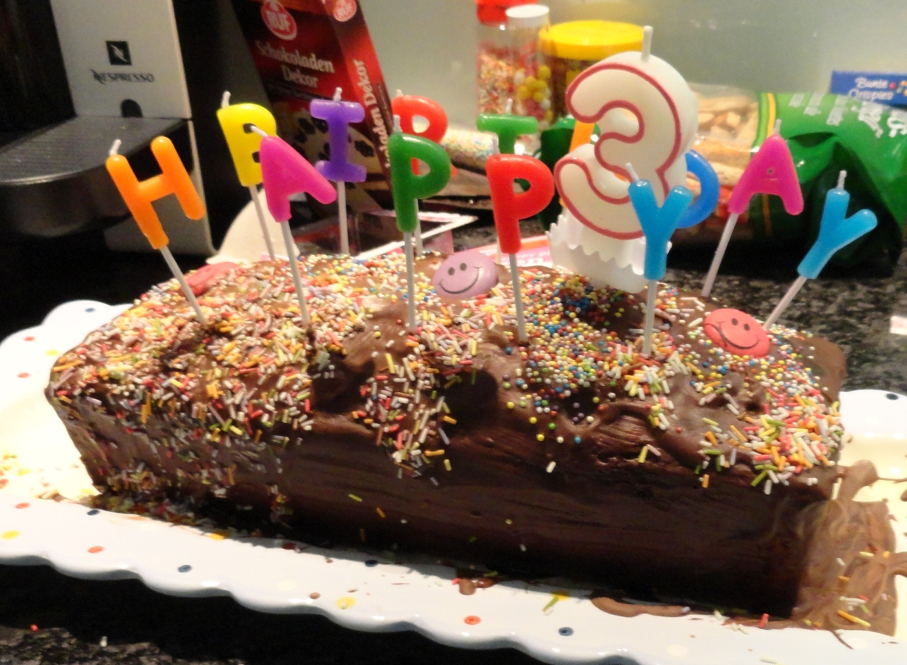 Dann Haus für die Kinderparty vorbereiten, Luftballons aufblasen, dekorieren, Klo putzen, duschen, Kuchen verzieren, LadyGaga baden, Mittagessen kochen… die Liste wäre endlos. Um 13.45 kam die erste Freundin (4) und ich war innert einer Minute erschlagen. LadyGaga drehte von gefühlten 90 auf 180 auf und rannte und quiekte und hüpfte und tanzte und sang und drehte sich fröhlich, als wäre sie auf Red Bull. Das andere Mädchen auch, das Geschrei war beachtlich. Und ich dachte: Ich geh in den Keller und bleib dort. Aber dann kamen noch mehr Mädchen dazu. Und ein Junge. Es gab kein Entrinnen vor der aufgedrehten Meute. Also auf ins Getümmel.