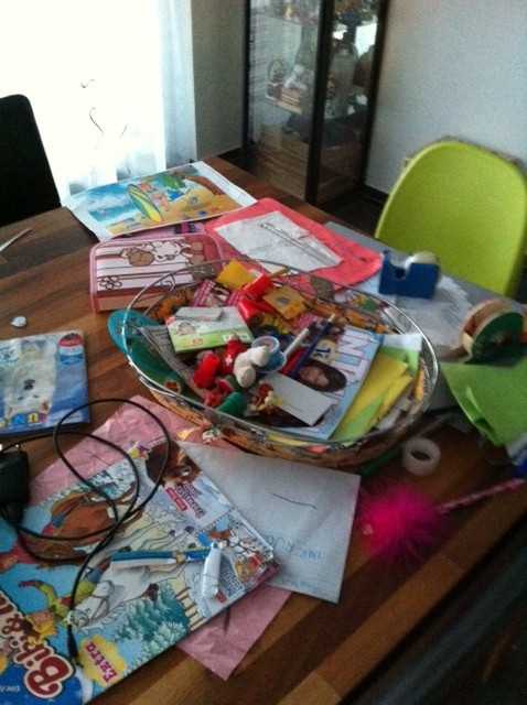 Wir räumen zusammen auf! Einen Teil hat sie auch alleine gemacht. Mit meiner Drohung, dass sonst alles im Abfall landet… Funktioniert immer.