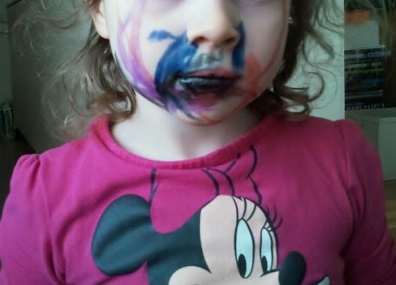 Sie hat glaub versucht sich zu schminken, weil sie das bei mir total faszinierend findet. So erkläre ich mir zumindest die Unterlippe…