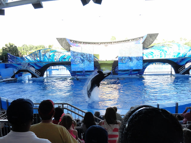 Als wir im Sea World in Orlando waren, besuchten wir die Orcas-Show, die ich schon vor 30 Jahren gesehen hatte. Spektakulär!